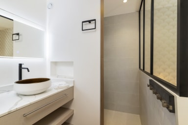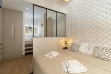 Cet appartement luxueux, idéal pour un séjour romantique, propose une décoration délicate et raffinée.