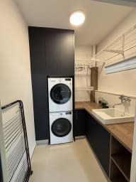 De nombreux rangements sont à votre disposition, ainsi qu'une buanderie entièrement équipée avec machine à laver, sèche-linge et évier.